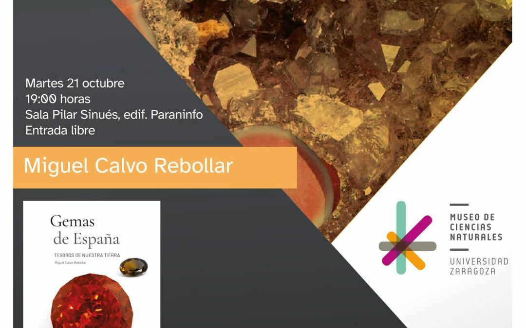 El próximo martes 21 de octubre tendrá lugar en el MCNUZ la presentación del nuevo libro de Miguel Calvo Rebollar “Gemas de España. Tesoros de nuestra tierra”, editado por Prames. La presentación del libro tendrá lugar el martes 21 de octubre de 2025 en la Sala Pilar Sinués del edificio Paraninfo de la Universidad de Zaragoza a las 19.00 horas. El acceso será libre hasta completar aforo.