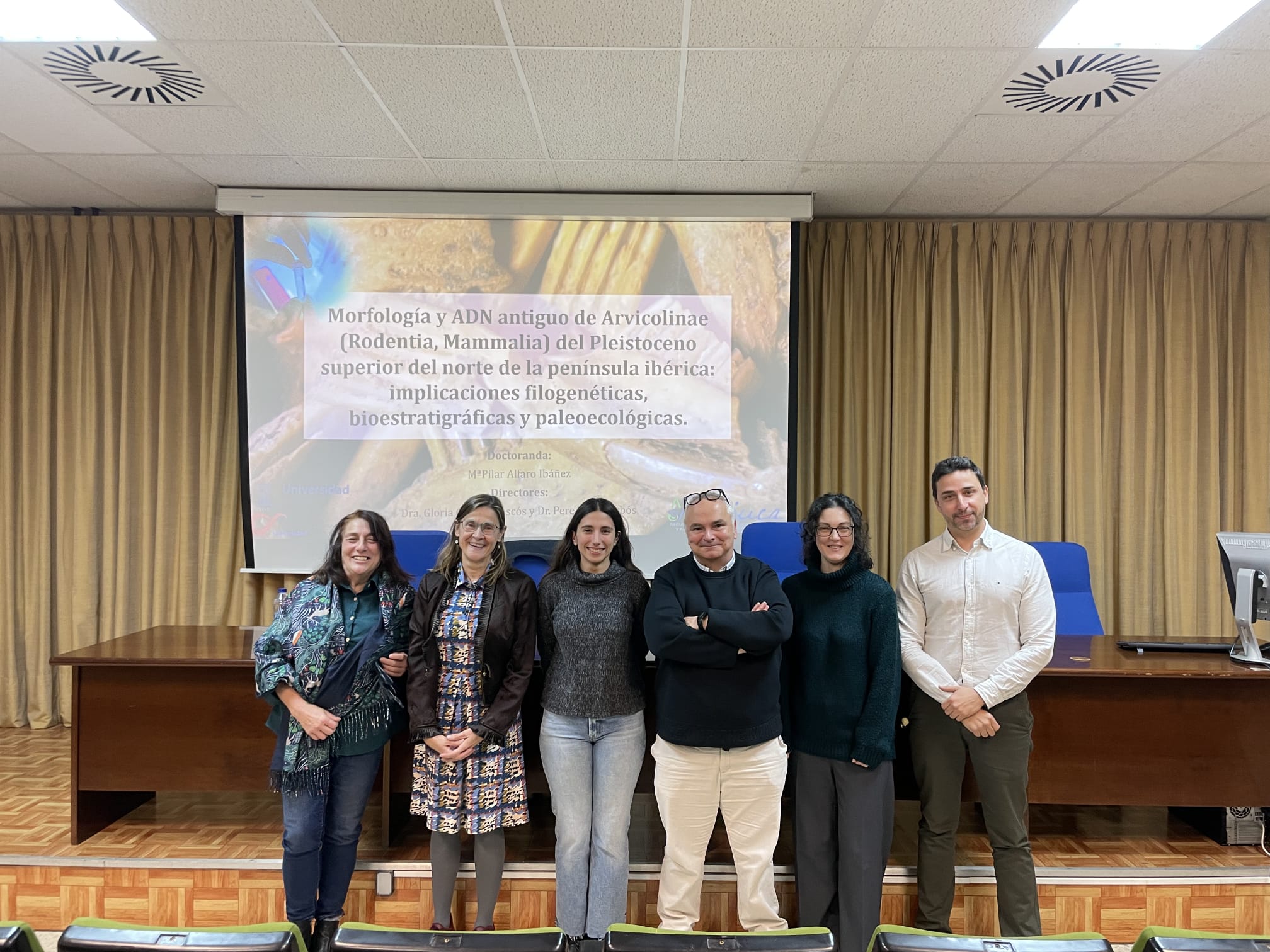 El pasado viernes 21 de noviembre presentó su tesis doctoral la aragosaurera Mª Pilar Alfaro Ibáñez, titulada “Morfología y ADN antiguo de Arvicolinae (Rodentia, Mammalia) del Pleistoceno superior del norte de la península ibérica: implicaciones filogenéticas, bioestratigráficas y paleoecológicas” y dirigida por la Dra Gloria Cuenca Bescós y el Dr. Pere Bover Arbós. El tribunal evaluador estaba constituido por Daniel de Miguel Cascán (presidente), Aurora Grandal d’Anglade (secretaria) y Elisa Luzi (vocal), que le concedieron la calificación de Sobresaliente Cum laude, así como la Mención Internacional.