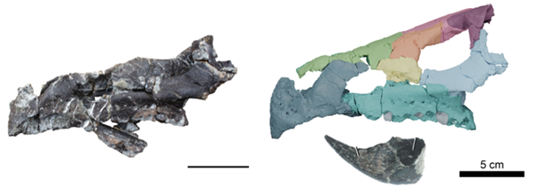 En el yacimiento húngaro de Iharkút (Santoniense, Cretácico Superior) se describió hace 16 años un fragmento incompleto de un morro de un dinosaurio, con una característica forma de pico, y al que se indentificó con un ceratopsio, definiéndose como Ajkaceratops kozmai (Ősi et al., 2010). No obstante, dado su estado incompleto y sus peculiares características morfológicas, algunos autores pusieron en duda su afinidad con los ceratopsios (Czepiński y Madzia, 2024), clasificándolo de manera más amplia como un ornitisquio indeterminado. No obstante, en la reciente publicación de Nature, Maidment y colaboradores estudian un cráneo mucho más completo de Ajkaceratops (Fig. 1) procedente del mismo yacimiento que no deja lugar a dudas sobre su pertenencia a Ceratopsia.
