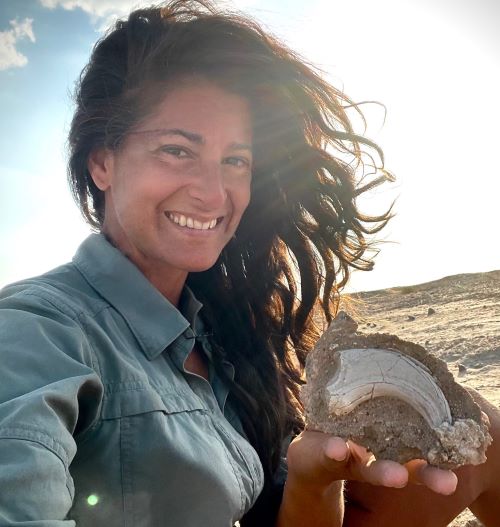 La paleontóloga Lindsay Zanno posa con ejemplar de Nanotyrannus estudiado. NC State University